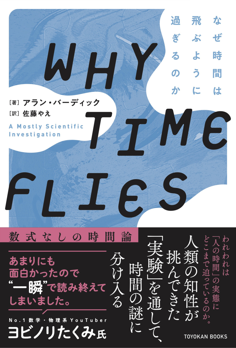 あまりにも面白かったので“一瞬"で読み終えてしまいました。No.1 数学・物理系YouTuber ヨビノリたくみ氏【本書が深入りする謎】音は耳、光は目、匂いは鼻。では、時間を感じているのは?世界一正確な時刻は誰が決めているのか1日=24時間の区切りがなくなると人はどうなるのか。事故にあったとき、世界がスローモーションになるのは本当か「今」とは何か。計れるのか。赤ちゃんは時間をどう感じているのか時間がゆっくり進んだり、あっという間だったりするのはなぜかなぜ歳をとると時間が速く過ぎるのか etc.もっとも身近でもっとも謎に満ちた存在に、気鋭のサイエンスライターが膨大な取材と文献で立ち向かうこれまでになかった「数式なしの時間論」