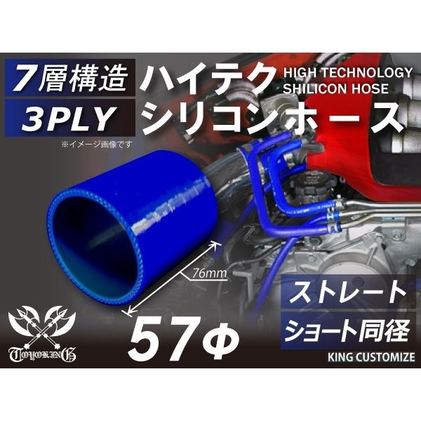 商品名:ハイテク シリコンホース ストレート ショート 同径 内径 Φ57mm 青色 ロゴマーク無しインタークーラー ターボ ラジェーター ライン 汎用品