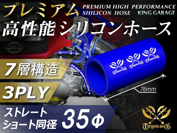 【16周年感謝セール】プレミアム 耐熱シリコンホース ストレート ショート 同径 内径Φ35mm 青色 ロゴマーク入り 自動車工業 汎用品