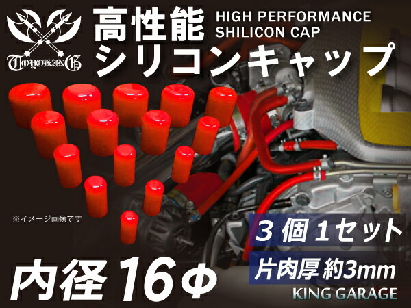 【16周年感謝セール】耐熱シリコンキャップ 内径Φ16mm 3個1セット 赤色 ロゴマーク無し 自動車工業 各種工業 自動車工業 港湾産業 汎用