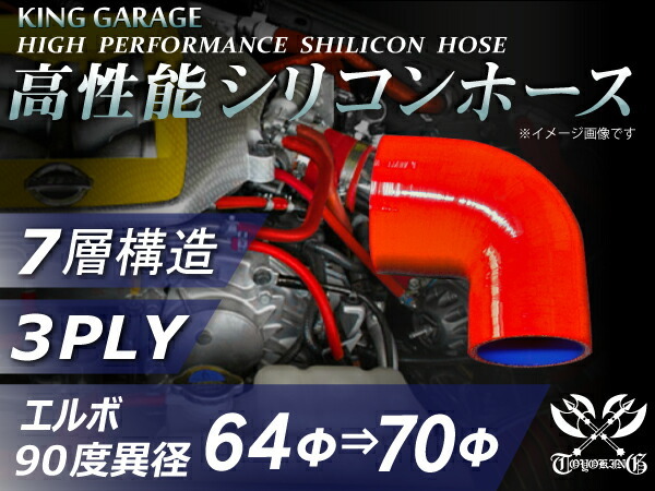 【16周年感謝セール】耐熱シリコンホース エルボ90度 異径 内径Φ64-70mm 赤色 片足長さ90mm ロゴマーク無し自動車工業 汎用品