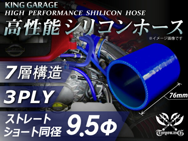 【16周年感謝セール】耐熱シリコンホース ストレート ショート 同径 内径Φ9.5mm 青色 ロゴマーク無 自動車工業 港湾産業 汎用品