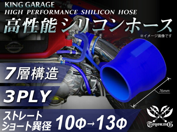 【16周年感謝セール】耐熱シリコンホース ショート 異径 内径Φ10-13mm 青色 ロゴマーク無し 自動車工業 港湾産業 各種工業等 汎用品