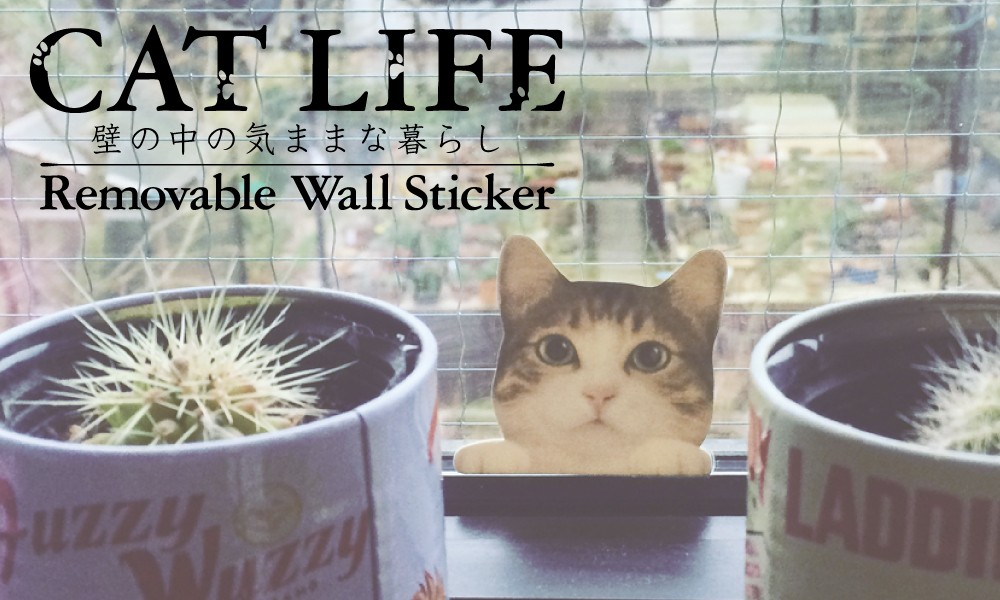 カラー ウォールステッカー 「CAT LI FE キャットライフ」(ネコ こんにちは・右)