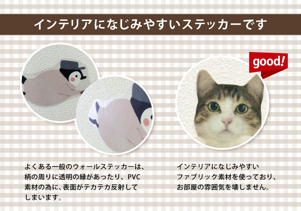 従来のシールのようにテカテカ反射することが無いファブリック素材で、インテリアにもしっくり馴染みます。