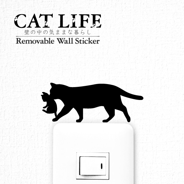 猫 ウォールステッカー 「CAT LIFE キャットライフ」(連行 ネコ親子)スイッチ ステッカー