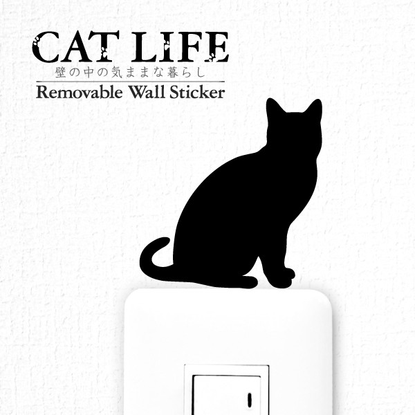 猫 ウォールステッカー 「CAT LIFE キャットライフ」(座るA)スイッチ ステッカー