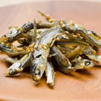 【原材料】片口いわし、アーモンド、砂糖、ごま、しょうゆ、澱粉分解物、食塩、調味料(アミノ酸等)、(原材料の一部に大豆・小麦を含む)