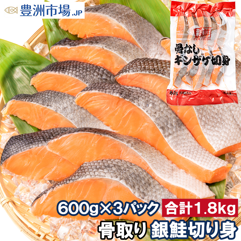 骨なし 骨取り 銀鮭 鮭 切り身 60g×10切れ 3パック 合計1.8kg 無塩 加熱用 さけ シャケ しゃけ 焼き鮭 朝食 お弁当 おかず おつまみ 酒の肴 業務用 豊洲市場
