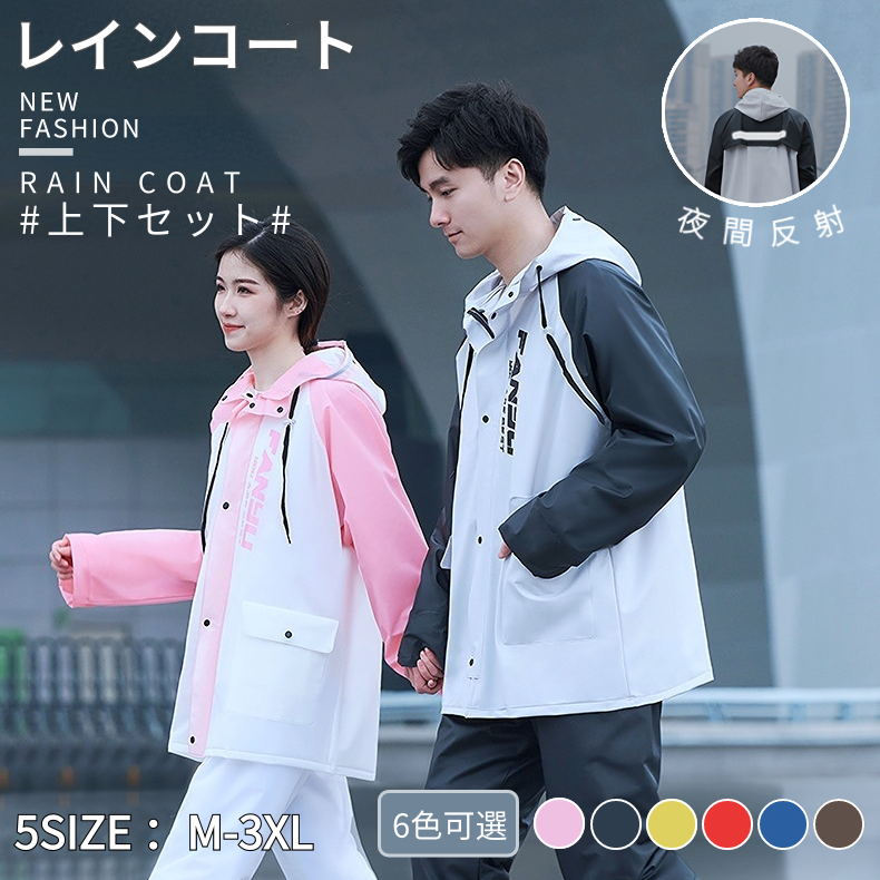 レディース メンズ レインコート レインスーツ 合羽 夜反射 2重透明ツバ付 防水ポケット付 上下セット セパレート レインウェア 自転車 電動バイクポンチョ
