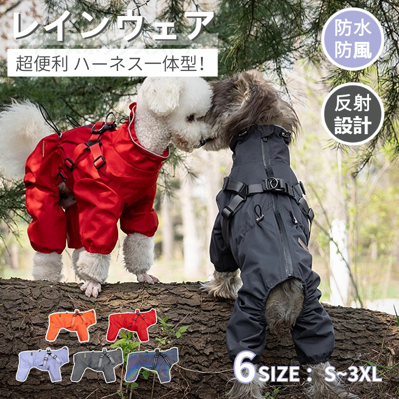 犬 レインウェア ハーネス一体型レインコート 小型犬 中型犬 ペットレインコート 雨具フード付きペットドッグウェア レイングッズ 雨カッパ レインウエア 犬服