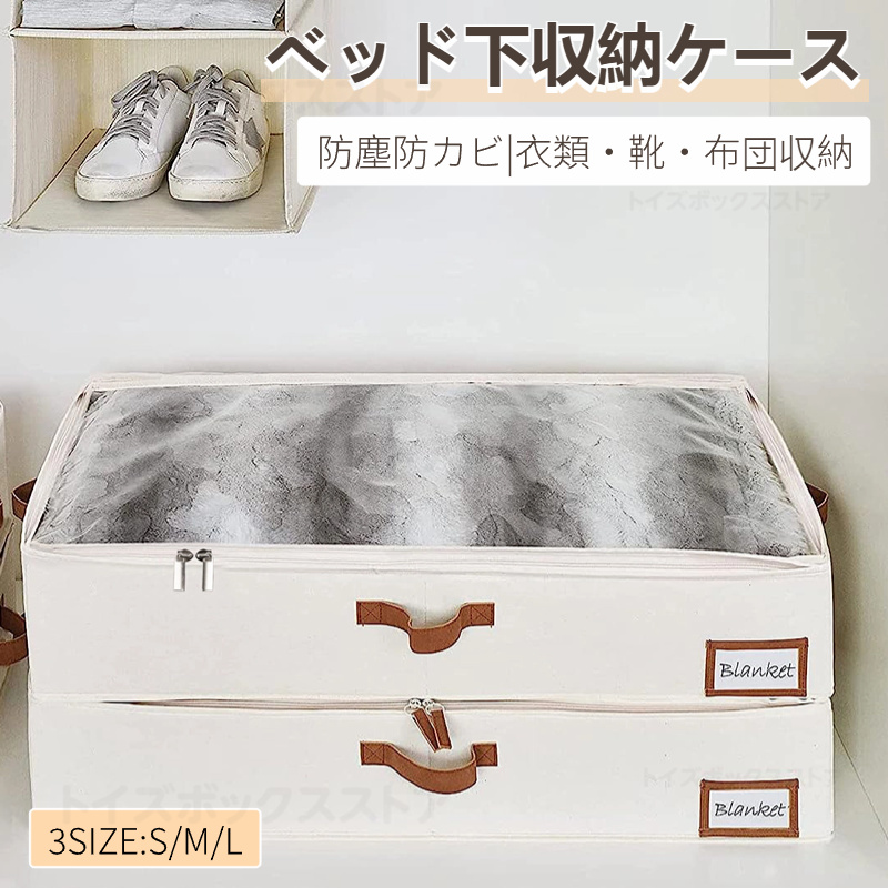 ベッド下収納ボックス 浅型ベッド下収納ケース 羽毛布団収納ケース 衣類収納 ダウン収納ケース 折り畳み 通気 クリアカードスロット付き 持ち手付 押し入れ収納