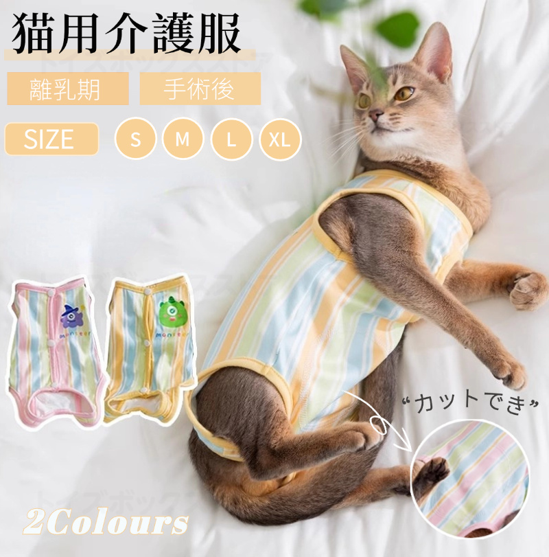 猫専用の術後カバーオール。 かぶせタイプなので着せやすいのもポイントです。