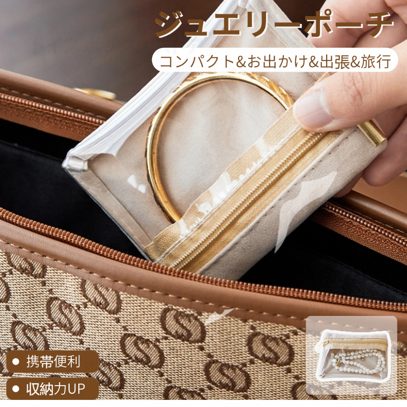 ●新登場話題製品!アイテム別に保管できるジュエリー収納ポーチ! 優しい感触でしっかり収納ポーチ!