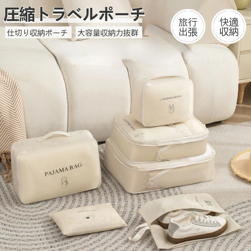 トラベルポーチ 旅行用圧縮袋 パッキングポーチ 旅行用 出張 衣類圧縮収納ケース 衣類 整理 便利グッズ 靴用 下着収納 6点セット ダウンジャケット収納ケース