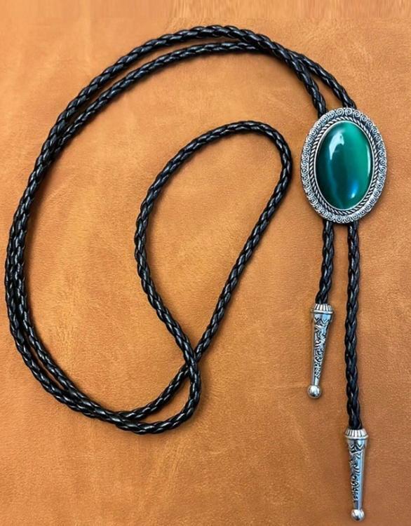 【ループタイ】深緑色キャッツアイ石 ボロタイ ストーン グリーン