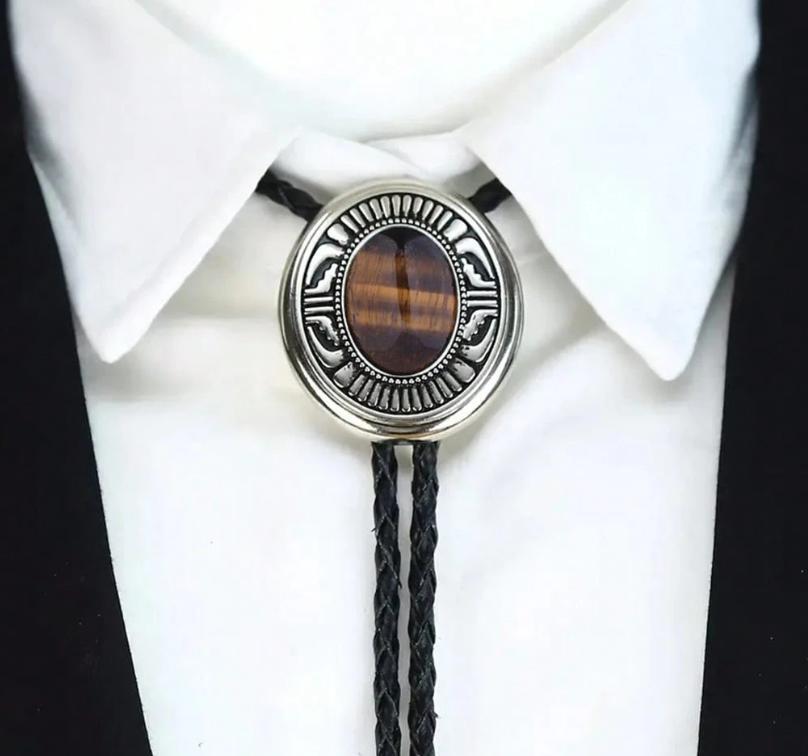 【ループタイ】 楕円型インディアン×虎目石タイガーアイ ビンテージ ストーン 送料無料