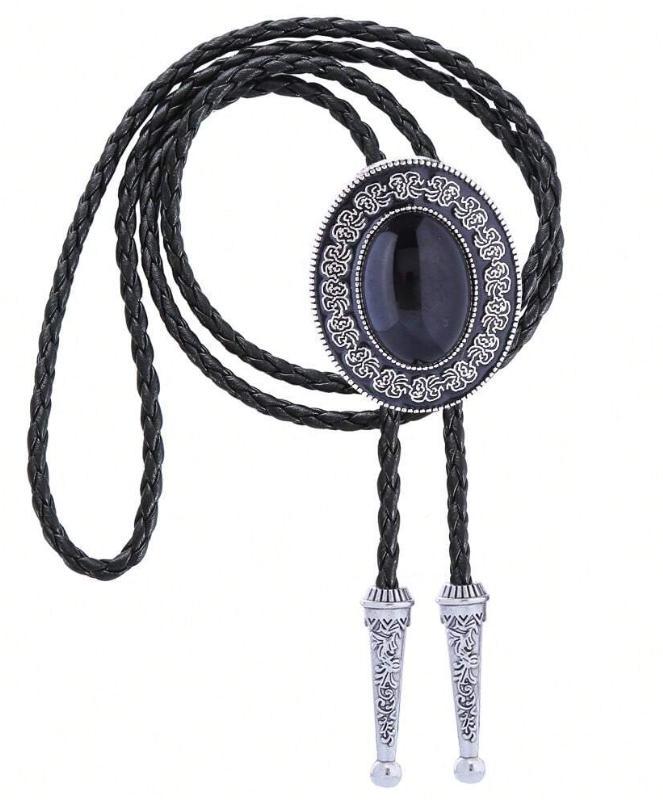 【ループタイ】装飾ブラックストーン ボロタイ ネックレス コスプレ シルバー