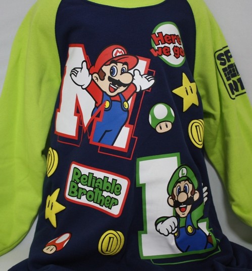 スーパーマリオ光る!パジャマさわってたのしい・ライムグリーン・裏起毛(バンダイ)