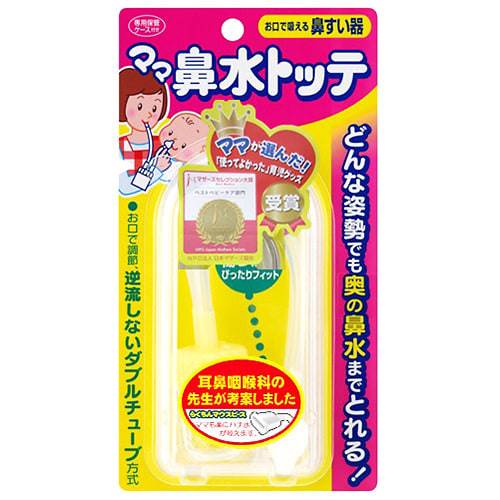 , 耳鼻科の先生が考案したお口で吸える鼻吸い器!ダブルチューブなので、寝かせた姿勢でもだっこしてでも、吸ったハナはママに入らず、お子様の鼻腔内にも逆流しません。