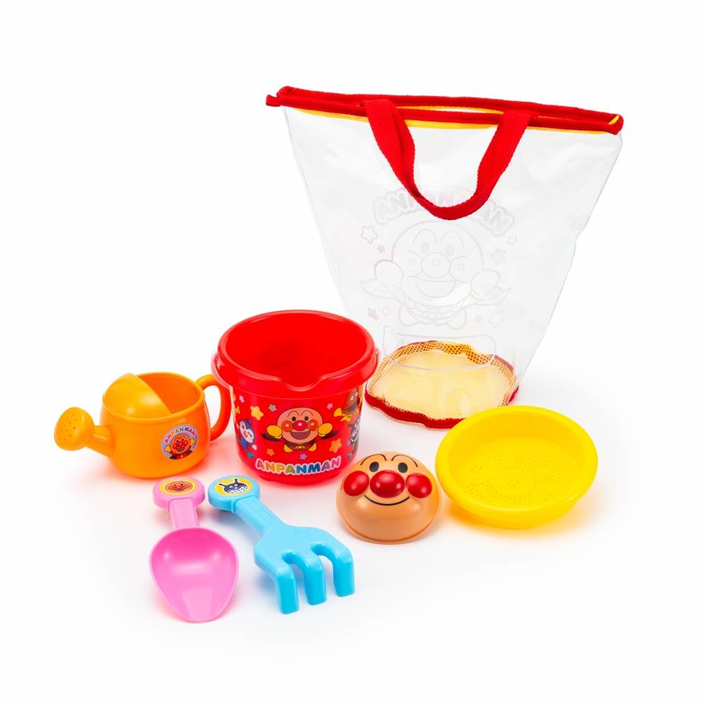 バケツ×1/スコップ×1/クマデ×1/ジョーロ×1/フルイ×1/アンパンマン砂型×1/バッグ×1