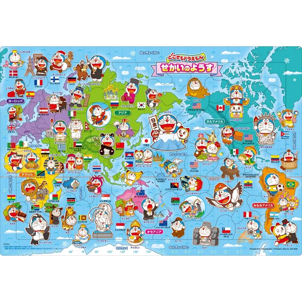 ,#00003652 どこでもドラえもんで世界地図をおぼえちゃおう!世界の国旗や各国の有名なものを楽しく覚えることができるパズルです!●85ピースの雲形パズルです。●台紙付きの子ども用パズルです。
