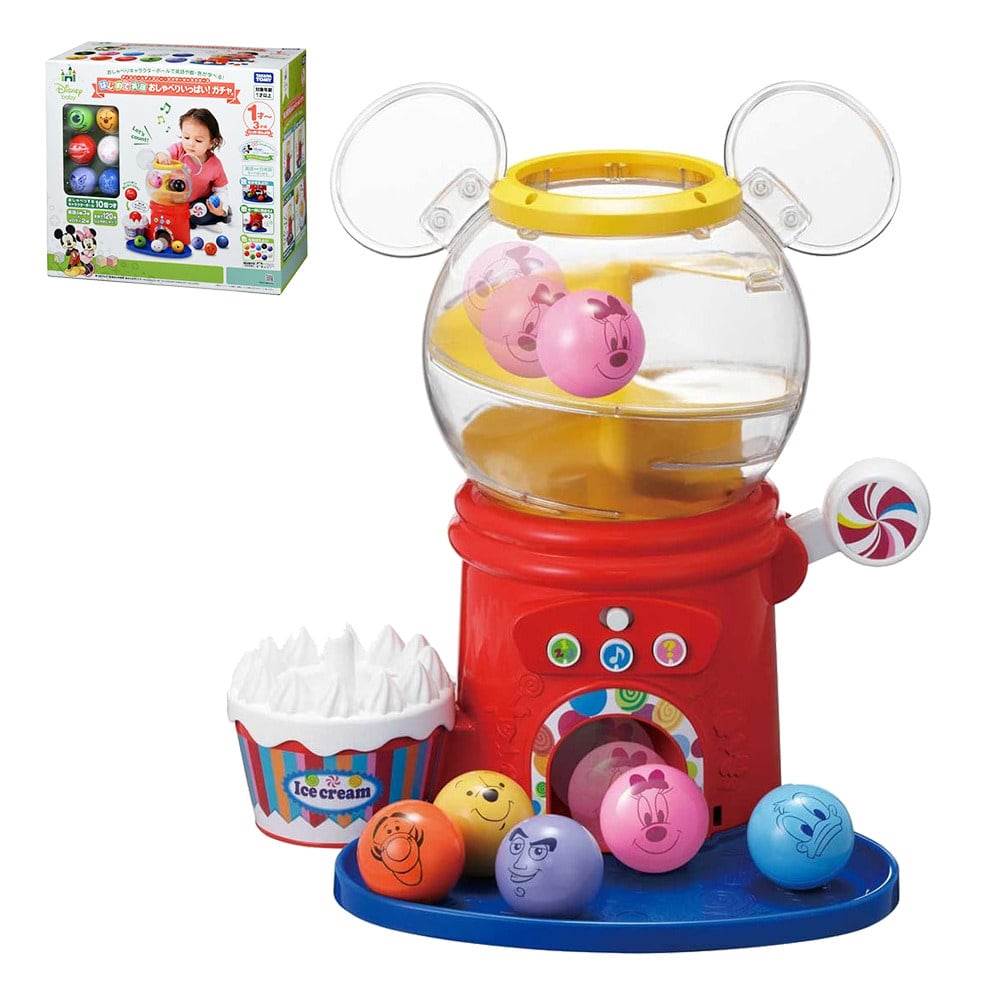 ガチャで遊びながら英語・数・色が学べる。ディズニーキャラクターのおしゃべりボール付き知育玩具。