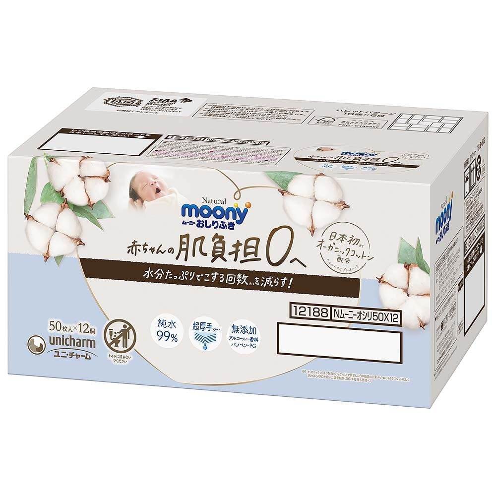 【おしりふき】moony ムーニーナチュラル おしりふき箱入り(50枚×12個)赤ちゃんの肌負担0へ