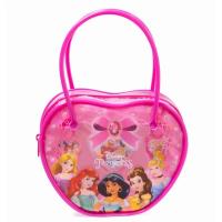 #20251114051 ディスニープリンセスのかわいいハート型バッグに入ったメイクアップセット。リップグロス3色と水溶性ネイルカラー2色のセットなので、初めてのメイクにもオススメです!<落とし方>ネイルカラーは、水溶性なので、除光液を使わず水で落とせます。