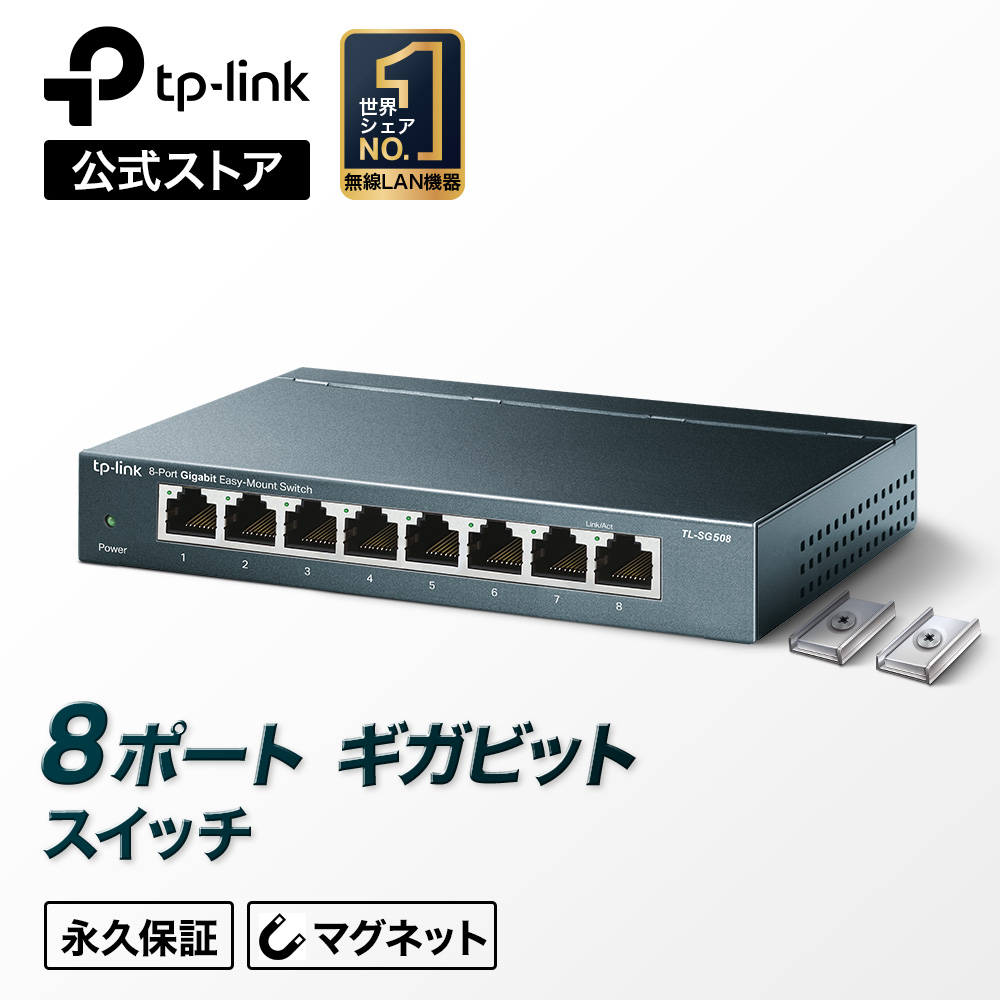 8ポート ギガビット らくらくマウント スイッチングハブ 金属筺体スイッチ (永久無償保証) TP-Link TL-SG508 ライフタイム保証 Giga対応10/100/1000Mbps