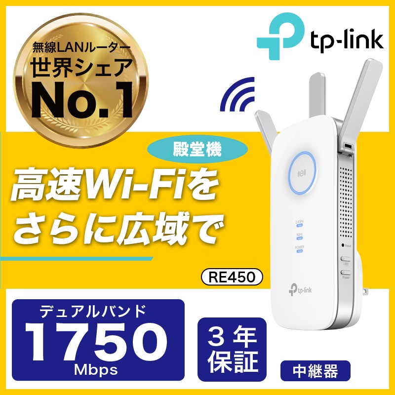 無線中継器 殿堂級1750Mbps無線LAN中継器 WIFI中継器 Wi-Fi中継機 無線Lan中継機 TP-Link RE450 11ac対応 コンセント直挿し ブリッジ(APモード)