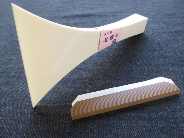 松濤の美しい象牙調三味線バチです。