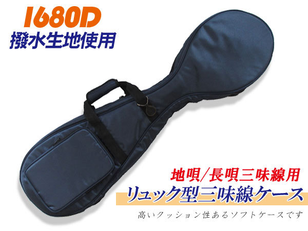 三味線ケース 1680D 地唄/長唄三味線ケース(ソフトケース) 【紺色】 リュック可能 雨に強い撥水素材