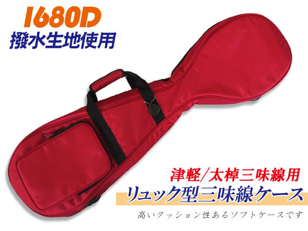 三味線ケース 1680D 太棹/津軽三味線ケース(ソフトケース) 【エンジ色】 リュック可能 雨に強い撥水素材