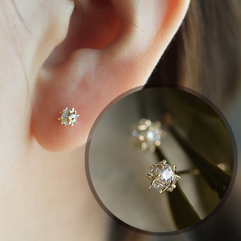 ピアス 18K レディース 小さめ アレルギー対応 ゴールド シルバー925 シンプル 安い セカンドピアス 華奢 18金 パヴェボールモチーフ 可愛い