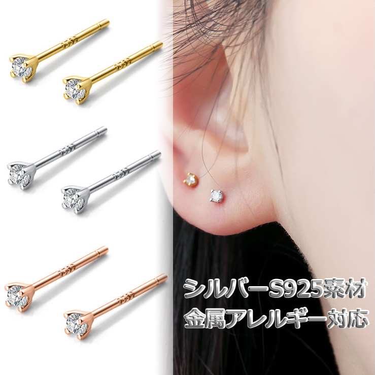 ピアス レディース 18K アレルギー対応 小さめ 小ぶり 1粒 シルバー925 ゴールド ピンクゴールド CZダイヤ 普段使い ギフト プレゼント