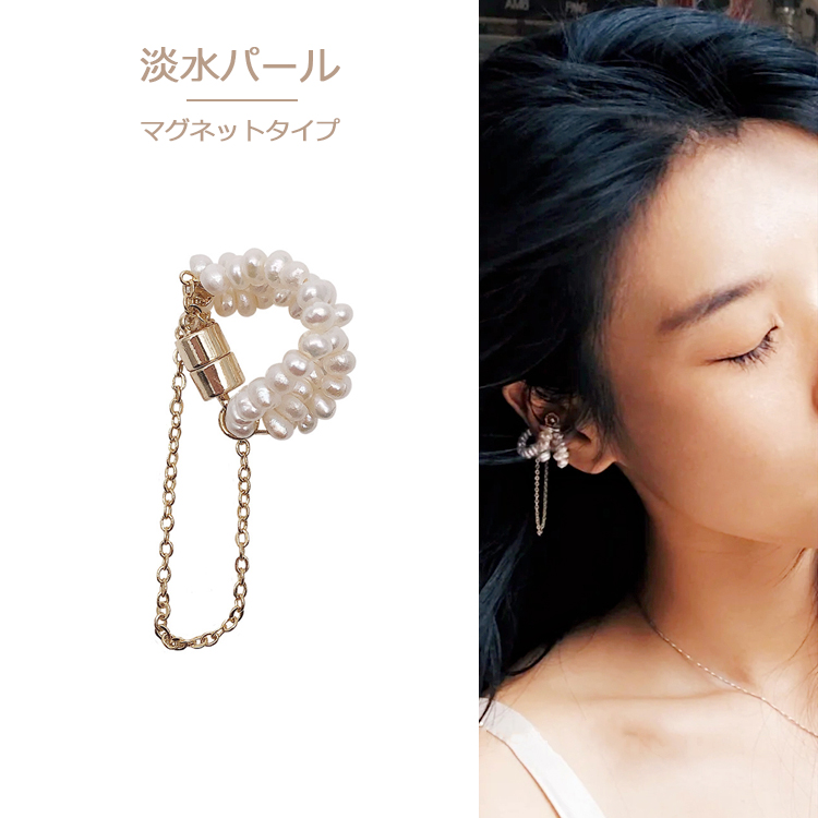 ピアス イヤリング 淡水パール 18金 レディース アレルギー対応 ゴールド パール チェーン マグネット 片耳用 仕事 オフィス プレゼント