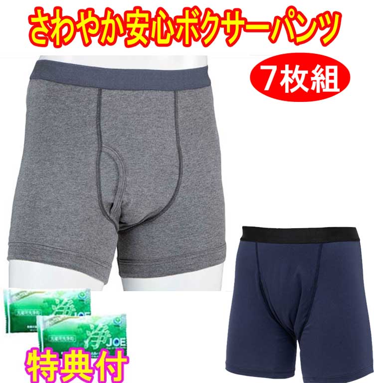 ファミラ さわやか安心ボクサーパンツ7枚組 レギュラー用タイプ(グレー4枚+紺3枚) 洗剤JOE30g×2個特典付き 軽失禁パンツ 尿漏れ防止パンツ