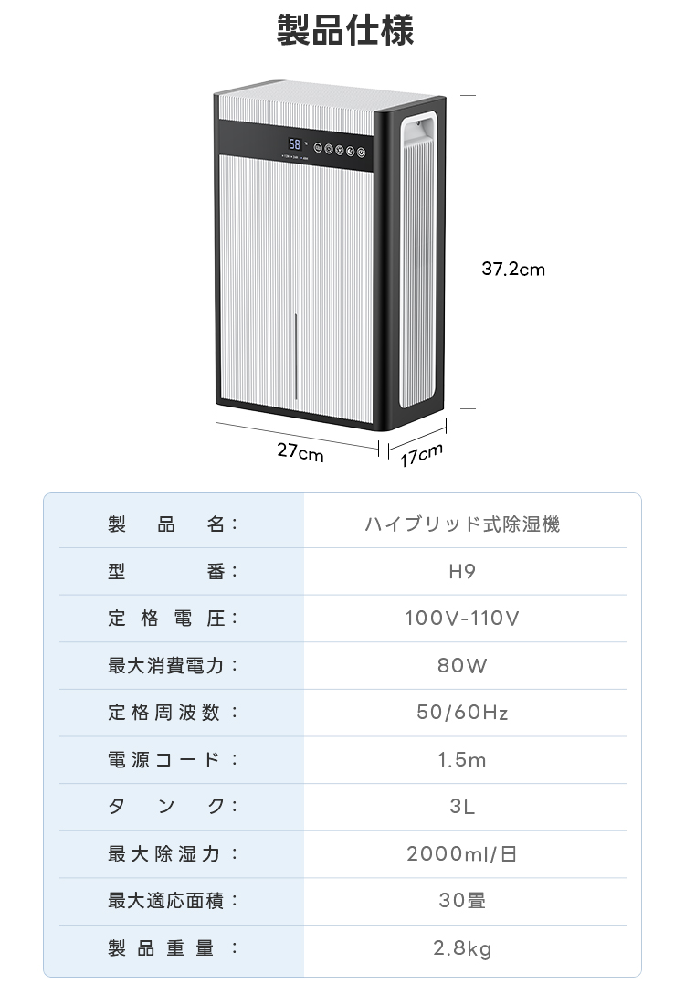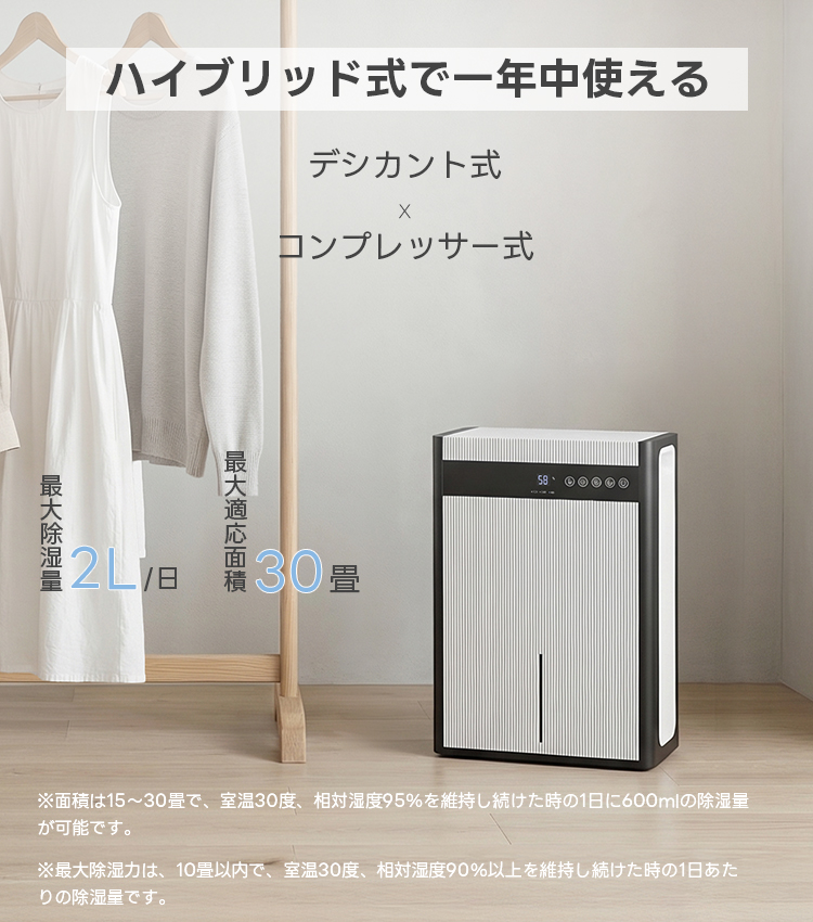 \クーポンで7,973円!/2026年最新型 除湿機 ハイブリッド式 3000ml大容量 30畳 2000ml/日 ナイトライト 切タイマー 衣類乾燥 省エネ 部屋干し 梅雨 湿気対策