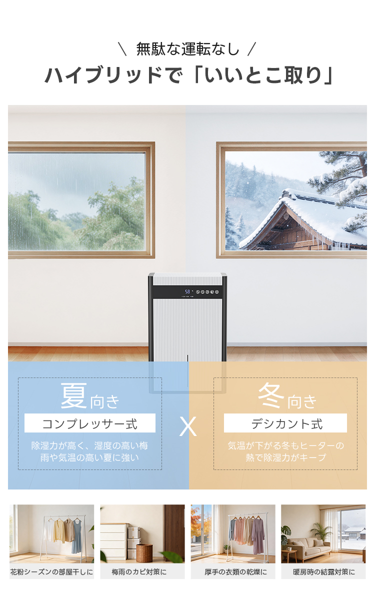 除湿機 ハイブリッド 除湿器 除湿 湿気 梅雨対策 衣類乾燥機 衣類乾燥 部屋干し 部屋干 室内干し 室内干 衣類 除湿乾燥機 除湿機 除湿器 除湿 梅雨 湿気 カビ 結露 梅雨対策 湿気対策 カビ対策 結露対策 リビング 図書館 浄化 省エネ 電気代節約 日本語説明書