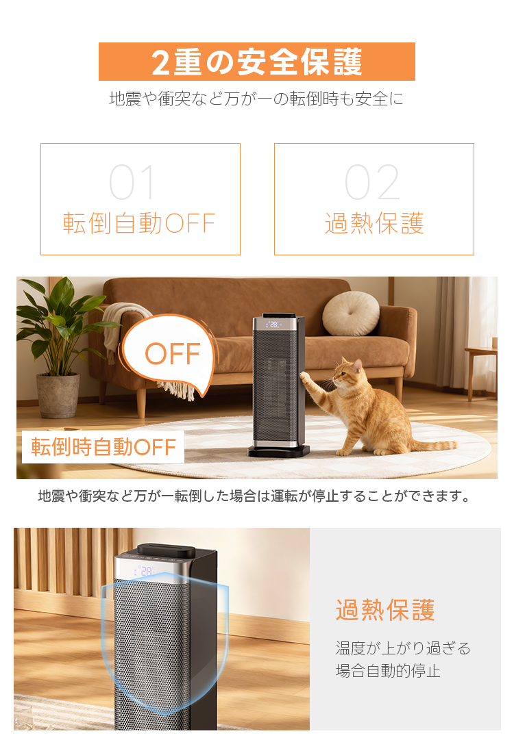 安全装置:転倒OFFスイッチ、温度ヒューズ、サーモスタット