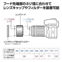 ■耐食性に優れるため建築用サッシなどに使われる材質) を、高精度の切削加工で作り上げたレンズフードです。内側には内面反射を防止するマット塗装と遮光線の処理をしています。フード先端部のネジ径に合わせてレンズキャップやフィルターを装着したり、フードを連結して望遠レンズに対応させることができます。レンズフードには直射光をカットしフレアやゴーストの発生を抑制する効果があるほか、レンズ面への外部からの接触を防ぐ役割もあります。