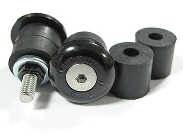 ■種類のラバー ブッシュが付属し、ハンドルバー内径直径15~17mm と直径17~19mm に対応するアルミ合金製エンドプラグ。