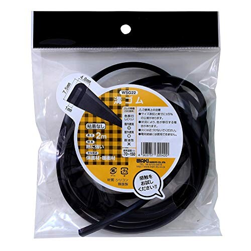 商品名 | 和気産業 溝ゴム 粘着無し 黒 4.8mmX1mmX7.5mm 長さ2m 保護材 緩衝材 WSG22 |