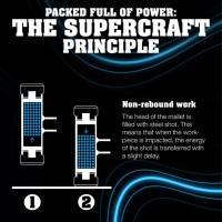 商品紹介スーパークラフト無反動ハンマー。細かい鉄のボールが入った無反動ハンマーです。実感のできる無反動感で手首の負担が軽減されるとともに打撃力が全て対象物に伝わるので疲れません。インサートは堅牢なナイロン製で交換も簡単です。丈夫なヒッコリー製のハンドル付。自動車の組立