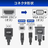 [コネクタ形状]HDMI 19ピン(メス) - VGA 15ピン(オス),microUSB(メス),ステレオミニジャック端子(メス)