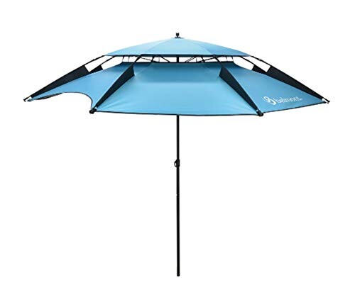 前面部がアーチ形状なので魚を寄せる時にも邪魔になりません。風を逃がすための風通し窓でパラソル内の気温を快適に保ちます。内側はUVカット加工しており、強い日差しなどから守ります。縫い目は水漏れ防止加工で水の進入を防ぎます。