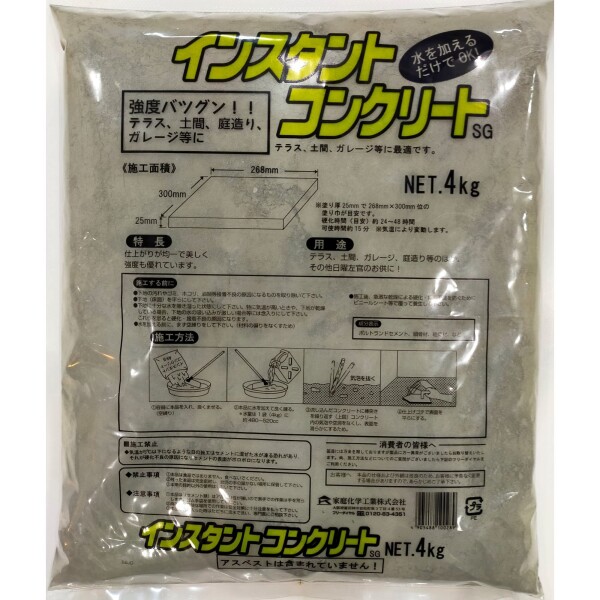 商品名 | 家庭化学 インスタントコンクリートSG 灰色 4kg 水を加えるだけでOK テラス 土間 庭造り ガレージ |