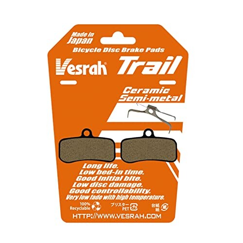 オートバイ用ブレーキパッドでは世界のストリート、 サーキットで高い評価を得ているベスラ。 会社創業時は自転車用ブレーキパーツからスタート。 60年に渡るノウハウを投入した自転車用ブレーキパッドでは 全日本ダウンヒル選手権をはじめ、国内外のレースで入賞。 しかもレース専用品ではなく誰もが購入できる市販品での成績であり、 この結果に高い注目と評価を集めています。 純正ブレーキパッドにはない特性、性能を持ち合わせ、 使用条件やライディングに合わせたブレーキのセッティングが可能。 ストッピングパワーが高く、フェード(熱による制動力の低下)にも強いと、 オートバイでの経験、レースで培った技術を自転車用でも存分に発揮しています。 ベスラブレーキパッドの製造は 茨城県笠間工場ですべてを行うメイドインジャパン。 配合素材も明確にし、環境への影響からアメリカで 使用禁止が議論されている銅は使用していません。 オレンジパッケージはトレイル用。 あらゆるコンディションで使用できるスタンダード仕様。 初期制動の良い、コストに優れた長寿命パッドで “最初のベスラ"、街乗りにも最適です。 温度依存性もないので低温、高温でも変わらない制動力を発揮します。