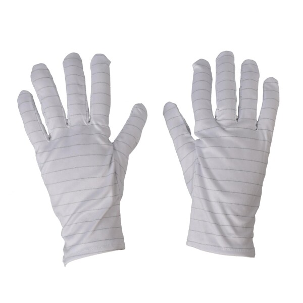 【静電気やホコリの付着を防ぐ制電手袋 】導電糸を編み込んだ生地で静電気やホコリの付着を防ぐ制電手袋。